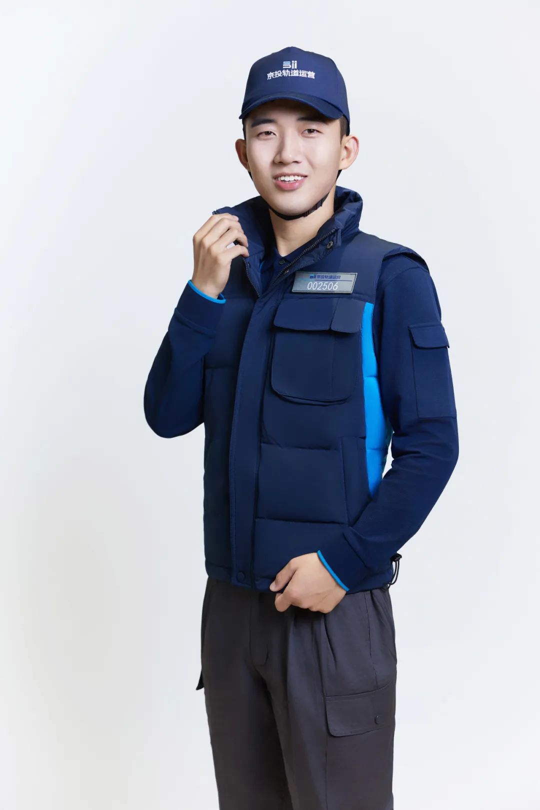 面料全面升级,与原面料相比更加挺适不宜起皱,里衬换成防静电面料,防风保暖性更强。腋下增加品牌色撞色设计;与棉服设计相呼应,使服装更有整体性。增加背部反光条设计,有效提升作业安全。羽绒马甲为维保、综合岗位通用款式。