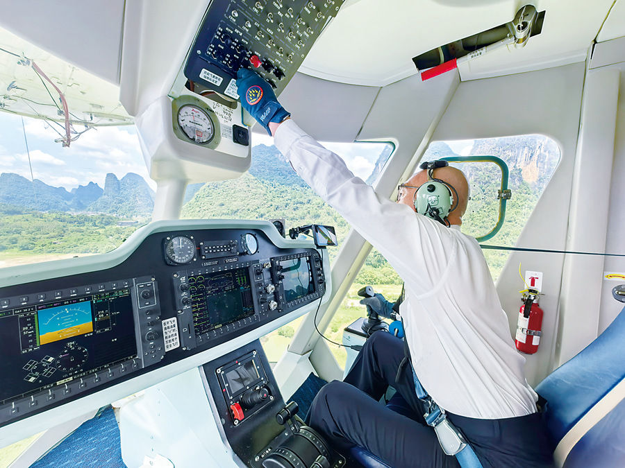 AS700飞行员林宏在飞行过程中操作艇上设备。沈东方 摄