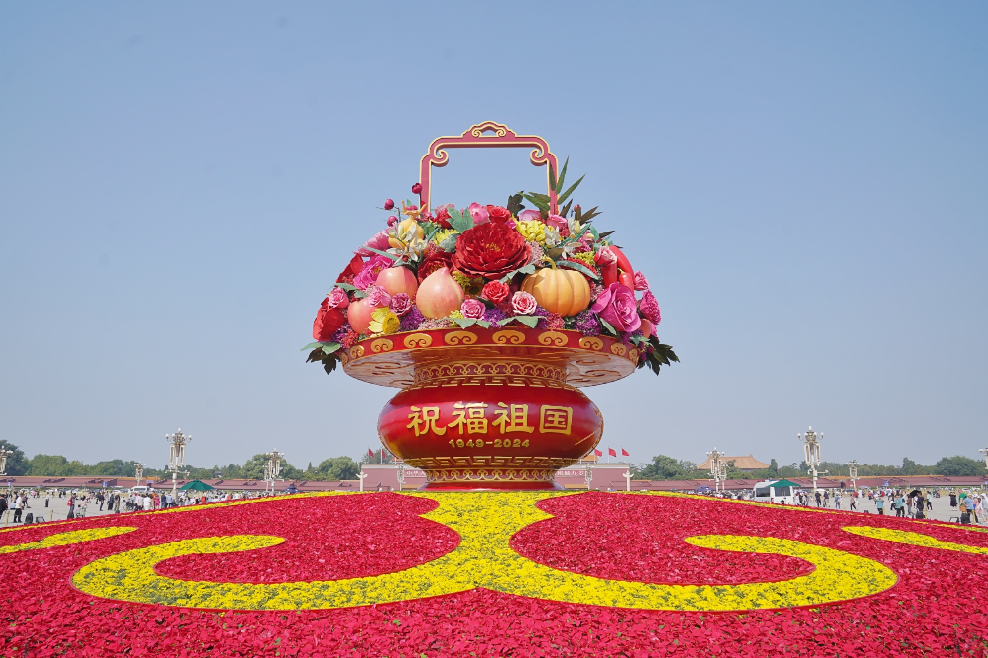 一个底部直径45米、顶高18米的“蔬果花篮”,已经在天安门广场中心位置亮相!