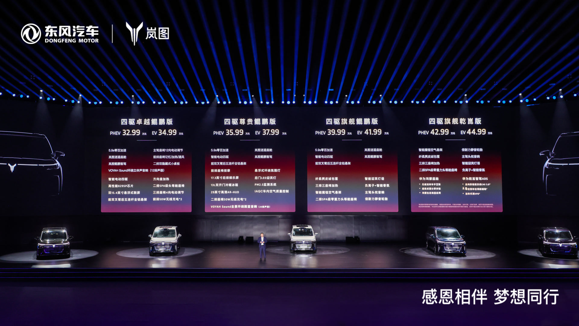 9月19日,全新岚图梦想家正式上市并公布价格,其中,全新岚图梦想家四驱卓越鲲鹏版PHEV 32.99万元、EV 34.99万元;全新岚图梦想家四驱尊贵鲲鹏版PHEV 35.99万元、EV 37.99万元;全新岚图梦想家四驱旗舰鲲鹏版PHEV 39.99万元、EV 41.99万元;全新岚图梦想家四驱旗舰乾崑版PHEV 42.99万元、EV 44.99万元。