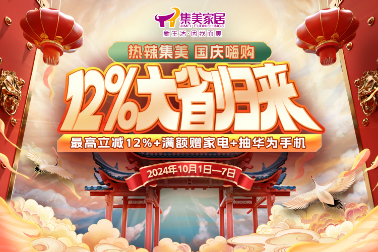 今年国庆假期期间,集美家居大红门商场、定慧桥商场双店联动,共同开启“国庆嗨购12%大‘省’归来”促销活动。