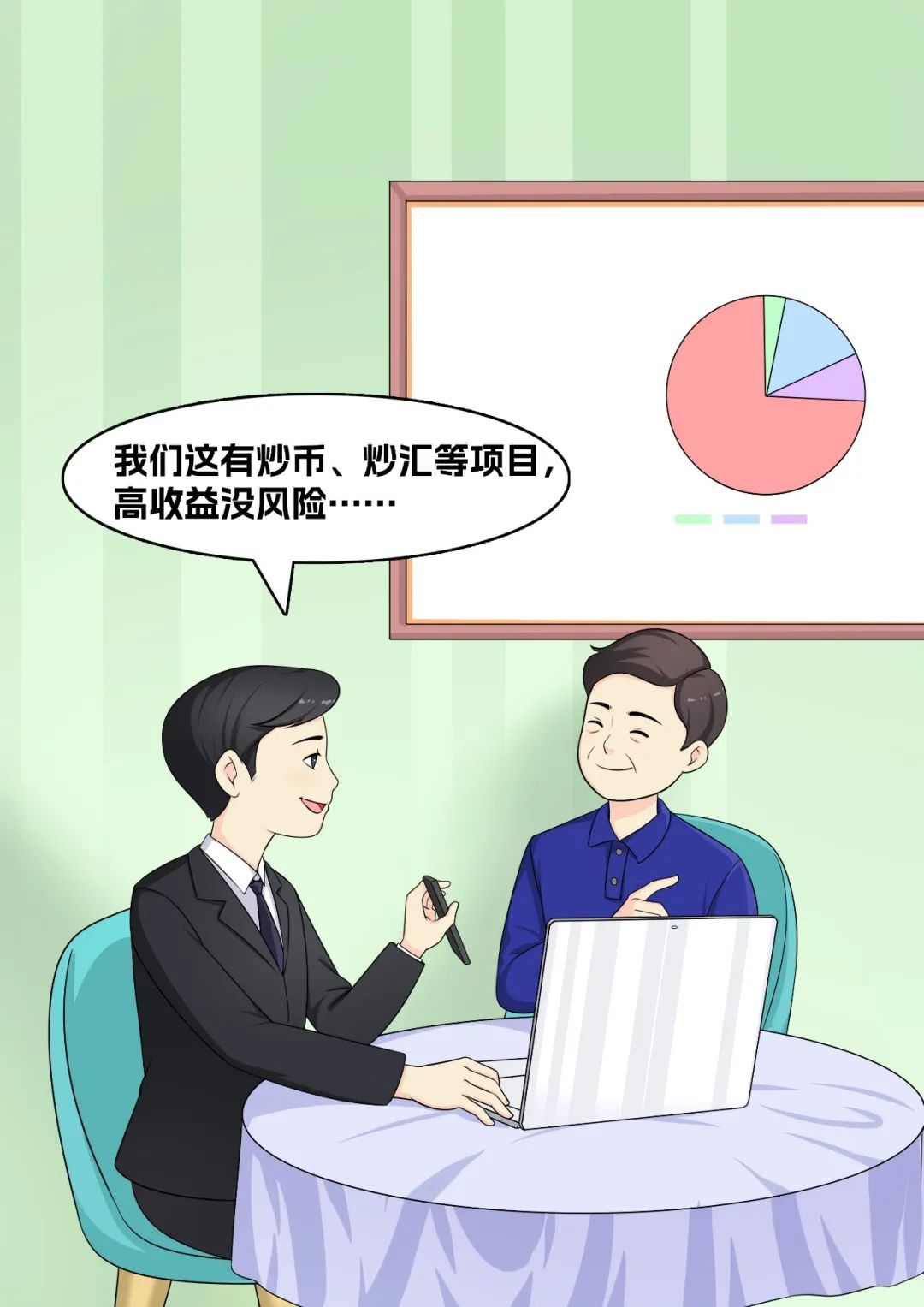 “炒汇”“炒币”是近年常见诈骗手法。“炒汇”诈骗者打着专业旗号,承诺高收益,伪造交易记录,操纵平台,让投资者血本无归。“炒币”诈骗分子鼓吹虚拟货币升值潜力,创建虚假平台,操纵价格走势,发展下线,最后消失。要谨记世界上没有高收益无风险的投资项目,面对投资诱惑需保持警惕。