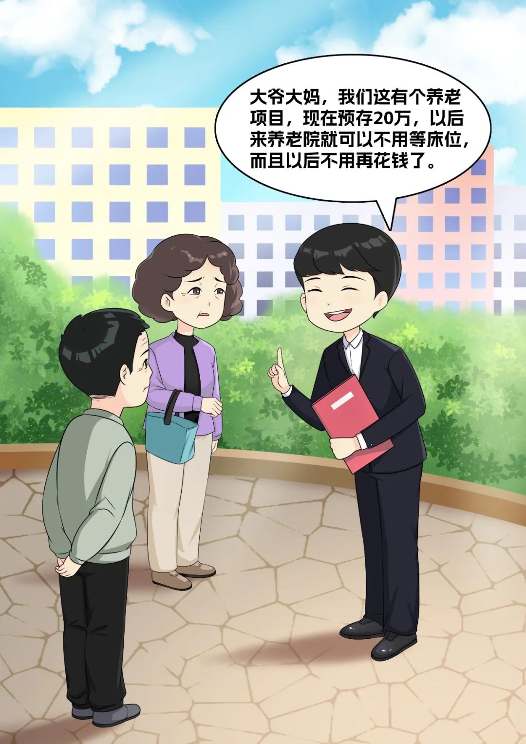不法分子瞄准老年人对养老问题的关切心理,以 “养老项目” 为诱饵,针对老年群体实施非法集资的情况屡见不鲜。建议大家务必选择具有合法经营资质的正规养老机构。切不可轻信任何个人或机构关于投资养老项目可获取收益的承诺,以免落入非法集资陷阱,遭受财产损失。