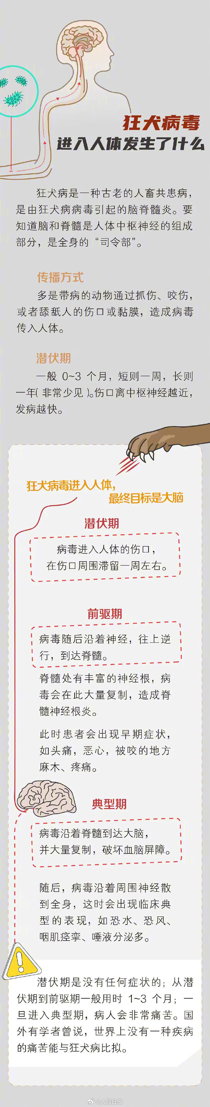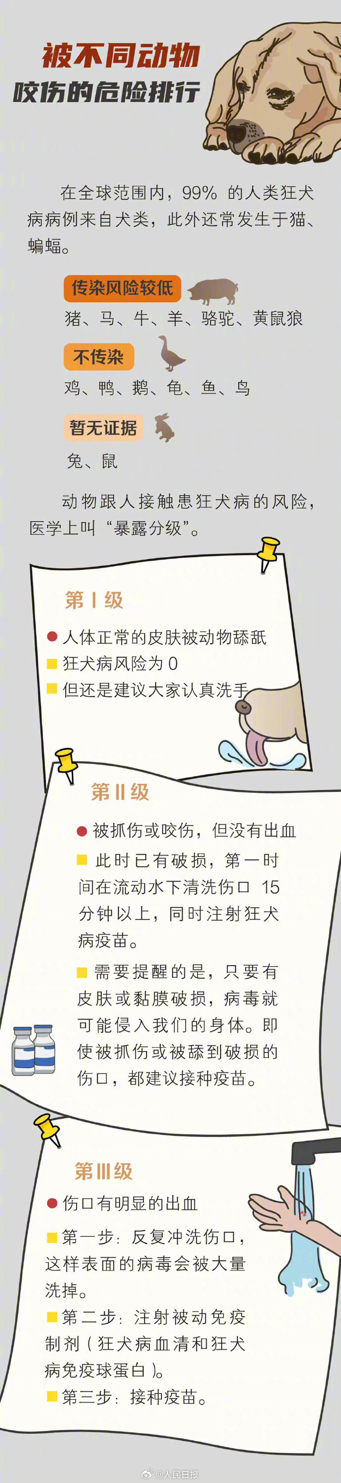 9月28日是世界狂犬病日,狂犬病是地球上最致命的疾病之一,一旦发病病死率几乎为100%。如果不小心被猫狗抓伤、咬伤,第一件事应该做什么?哪些情况需要接种狂犬疫苗?不是只有猫狗才会传染狂犬病,戳图了解↓↓