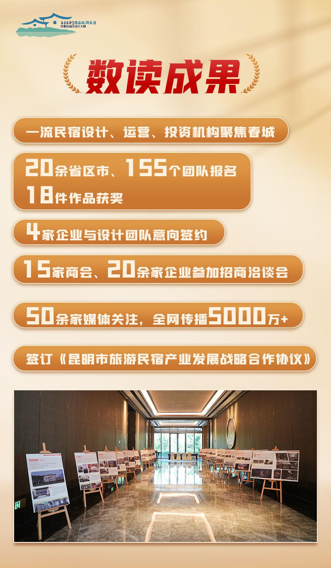 大赛期间,在第二届滇商大会昆明市精品旅游民宿和酒店发展交流座谈会上,昆明市文化和旅游局与中国旅游协会民宿客栈与精品酒店分会签署《昆明市旅游民宿产业发展战略合作协议》。双方将进一步整合优势资源,促进产业融合,为昆明旅游民宿产业注入新的活力。