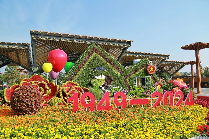 今年国庆,园区在一号门前精心打造了一座立体花坛,花坛运用世园LOGO “长城之花”,选用五色草、变叶木、三角梅、一品红、国庆菊等,共同组成了和谐、幸福、活力满满的 “美丽家园”花坛。一号门旁,北纬40度香甜事业品牌线下店开店迎客,这里展示售卖缤纷多彩的世园花卉,有娇艳亮丽的各色朱顶红、橘红色的亚百合、圆润饱满的绣球等。此外,还有延庆北纬40度独特气候条件下有机种植的苹果、葡萄、软枣猕猴桃、海棠果等,让八方来客把“香甜”带回家。