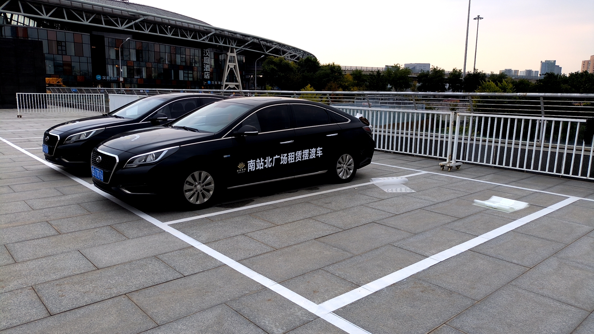 目前,在北广场西侧施划了10个停车位,设置汽车租赁摆渡车,下一步对市民旅客开放租赁服务功能,市民旅客可以在地下负一层办理租赁业务,在北广场乘坐租赁摆渡车到达租车地点,然后使用租赁汽车。