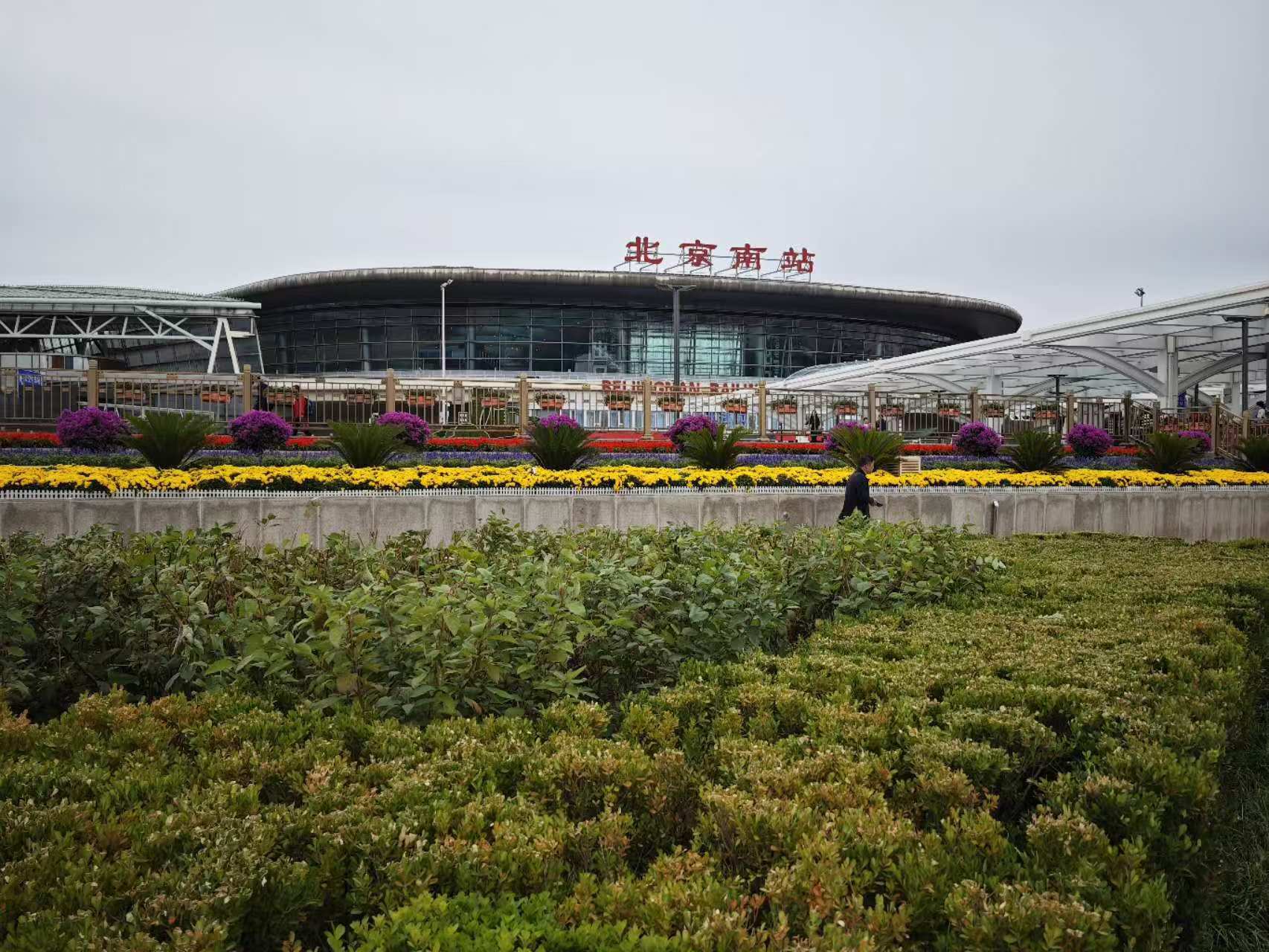 “今年国庆花坛首次摆进北京南站,为营造良好的节日氛围,我们在北广场护栏上挂花190米,协调丰台区设置20组60个花箱,地栽鲜花绿植近600平方米,提升北广场整体景观环境。同时,对北广场的隔离护栏进行了调整,开放广场东侧区域,让出2000余平方米的行人空间,方便旅客通行和打卡拍照。”北京南站地区管理办公室相关负责人介绍。