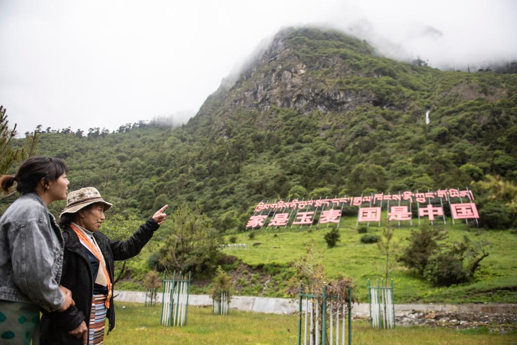 玉麦乡山坡上的标语(2022年6月1日摄)。新华社记者 张汝锋 摄