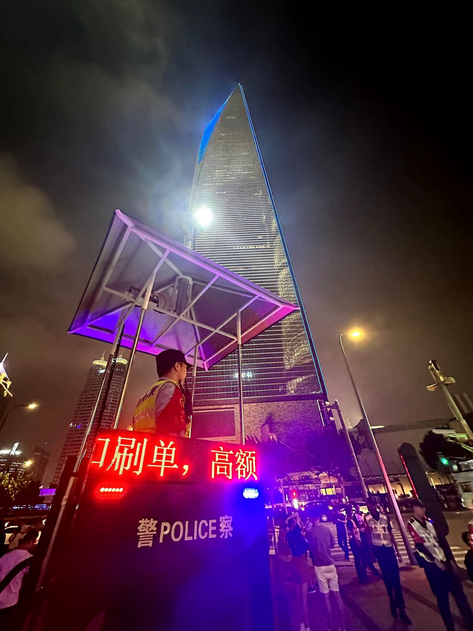 为此,陆家嘴治安派出所提前做好安保措施。民警在环廊上放置了“铁马”、横幅等设施,及时疏导涌入的客流、车流。半透明帷幕也将适时登场,为夜色增添美感,避免游客因留恋美景逗留。而巡逻民警将拿着喇叭及时提示游客,防止拥堵情况发生。