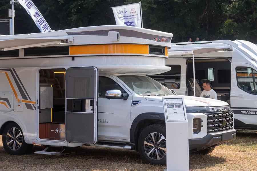 在房车展区,一辆随州制造的登峰重卡高大威猛,吸引了许多人围观体验。这款房车车身高达4米,加上1.67米的升顶,不仅采用了新型材料和智慧集成系统,还采用激光无缝焊接工艺打造“硬核”的外壳。