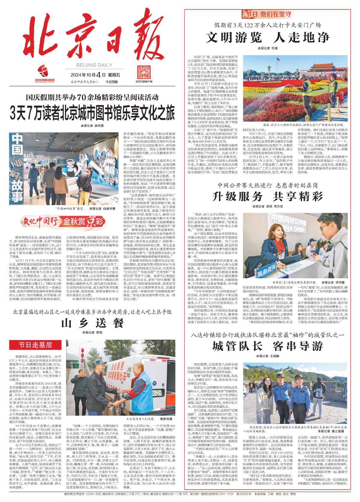 首都图书馆馆长毛雅君告诉记者,国庆期间,北京城市图书馆共举办70余场精彩纷呈的阅读文化活动,内容涉及“红色记忆”“传统非遗”“艺术赏析”“美好生活”等多个主题。读者可以重温红色记忆中的北京,聆听“时代楷模”故事,还可以零距离体验制香、面塑多项非遗技艺,听古典钢琴音乐会、动漫音乐会,或持一杯咖啡观“中国咖啡故事”展览,“欢迎大家来城市图书馆,来一场文化之旅。”详情>>
