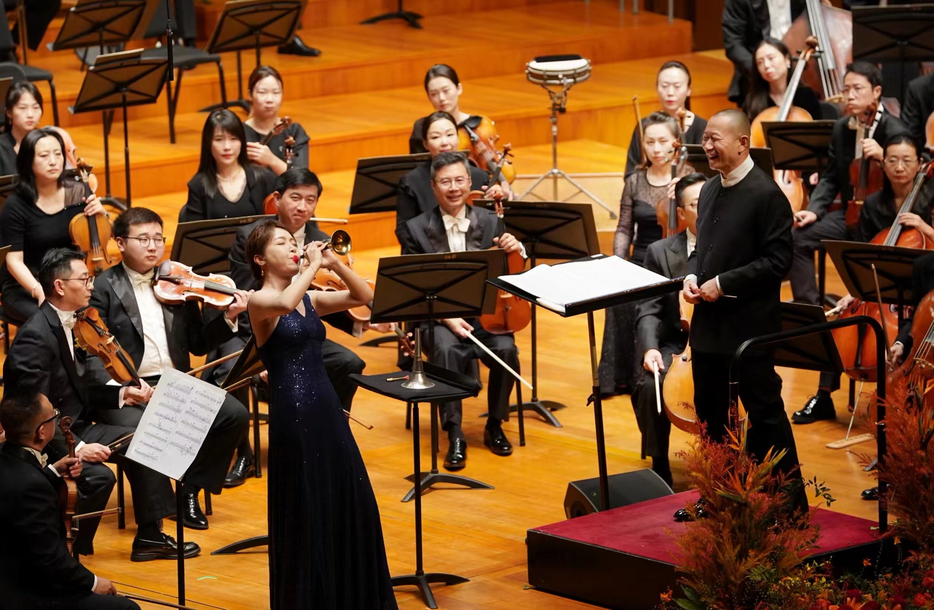 中外名作同台奏响,东西方乐器交相辉映,10月5日晚,《百鸟朝凤 中西齐鸣 谭盾执棒中国交响乐团特别音乐会》在国家大剧院上演。在著名作曲家、指挥家谭盾的执棒下,琵琶演奏家赵聪、唢呐演奏家刘雯雯与小提琴家陆威、大提琴家王健联袂中国交响乐团,共同登台为新中国成立75周年献礼,也为第二十七届北京国际音乐节的精彩演出拉开了序幕。