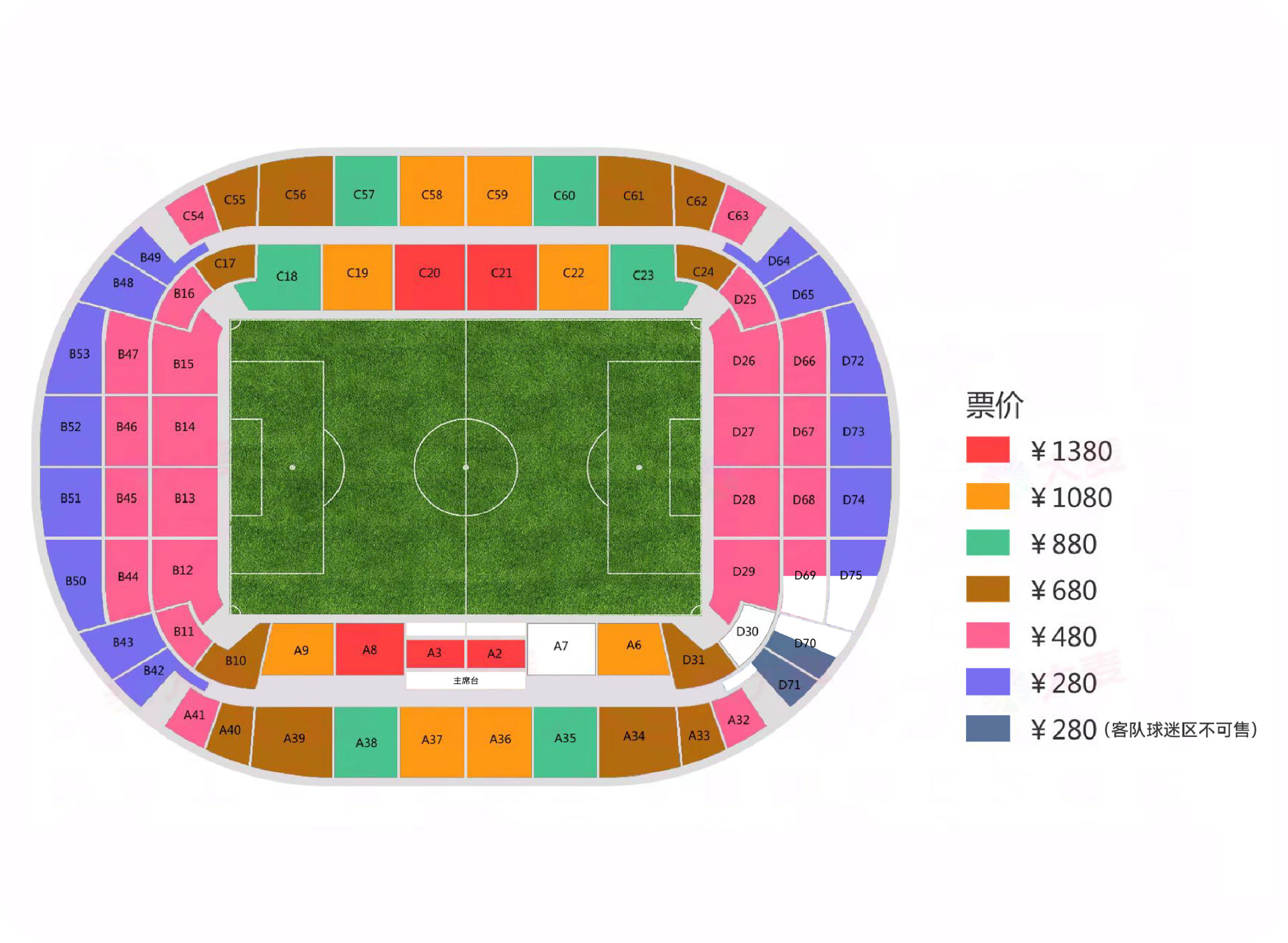 截止10月5日,本场比赛的球票中前三档球票已经售罄,880元、1080元和1380元三档球票依然在售。