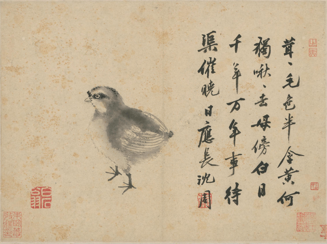 茸茸毛色半含黄,何独啾啾去母旁。白日千年万年事,待渠催晓日应长。