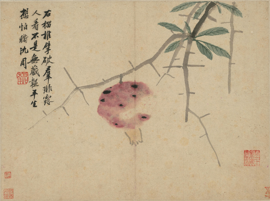 石榴谁擘破,群琲露人看。不是无藏韫,平生想怕瞒。