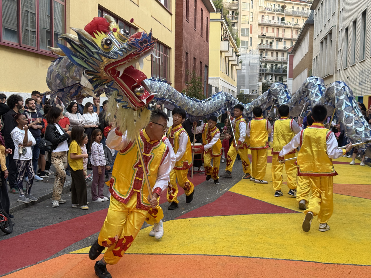 华文学校舞龙表演亮相意大利米兰街头 拍友 赵建斌 摄