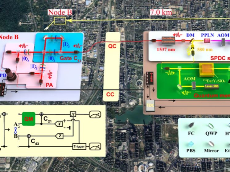 记者从中国科学技术大学获悉,该校郭光灿院士团队在量子网络领域取得重要进展——基于固态量子存储实现跨越7公里的分布式光量子计算。研究成果日前发表在国际期刊《自然·通讯》上。详情>>