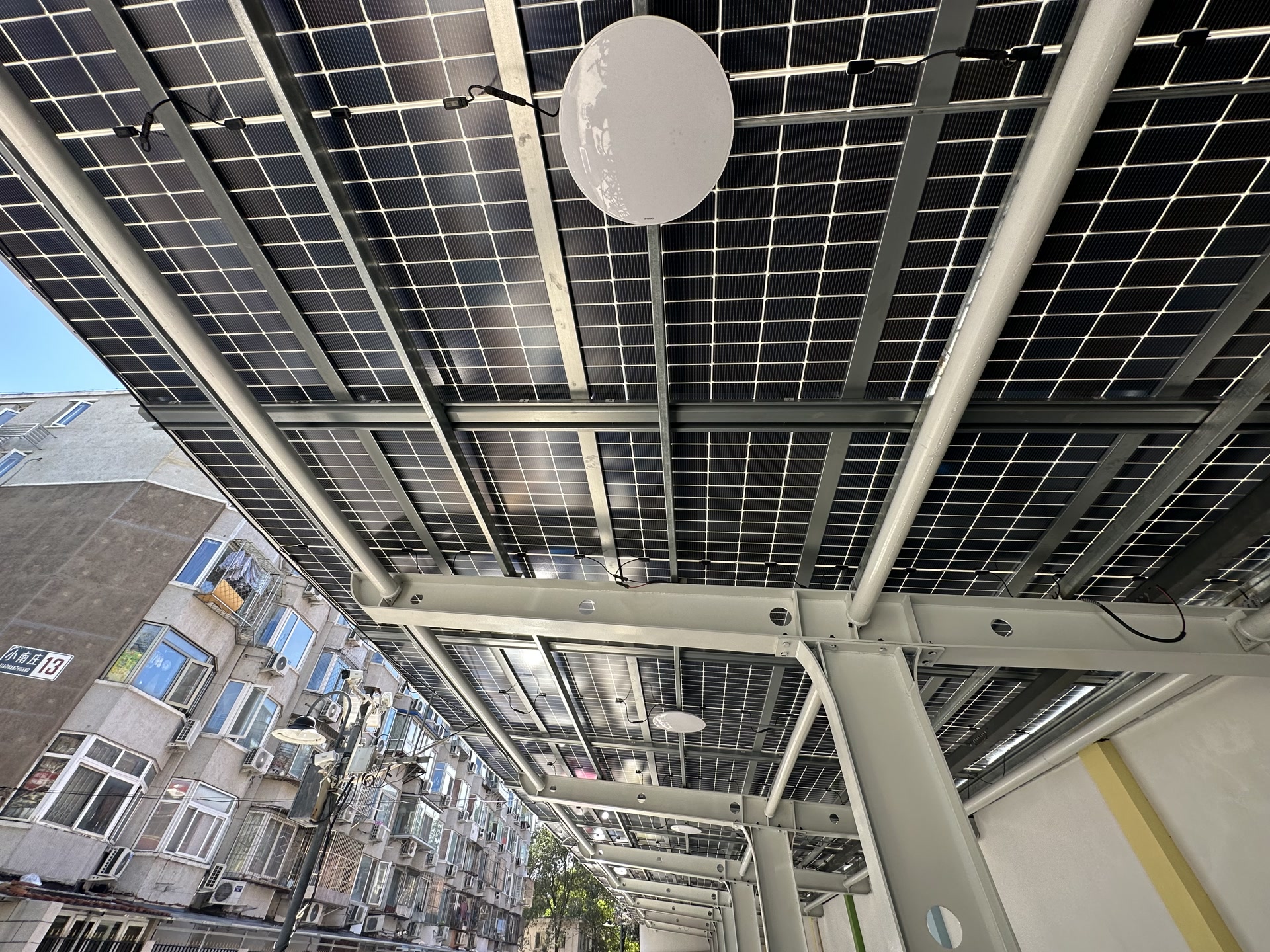 为了解决这一问题,社区一边加快光伏车棚的安装,一边推进车棚光储设备尽快接入国家电网。经过一个多月的准备,新车棚正式投入使用。光伏车棚提供的“绿色电”,减小了社区使用高压自管电的压力,消除了夜晚电动车充电断电的风险。据估算,这个光伏车棚预计每年还可发电5.1万度,减少二氧化碳排放30吨。