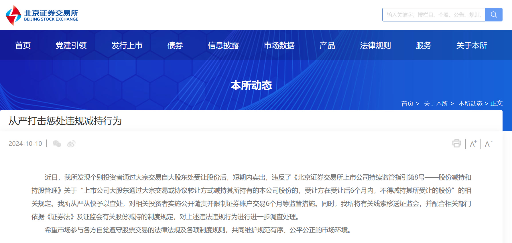 剑指违规减持,北交所果断亮明态度:从严打击!
