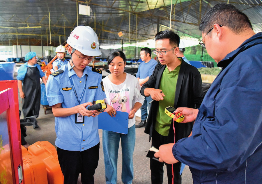 四川省眉山市应急管理局执法人员在一食品加工企业 开 展 安 全 检 查(2023 年 9 月摄)赵学兵摄
