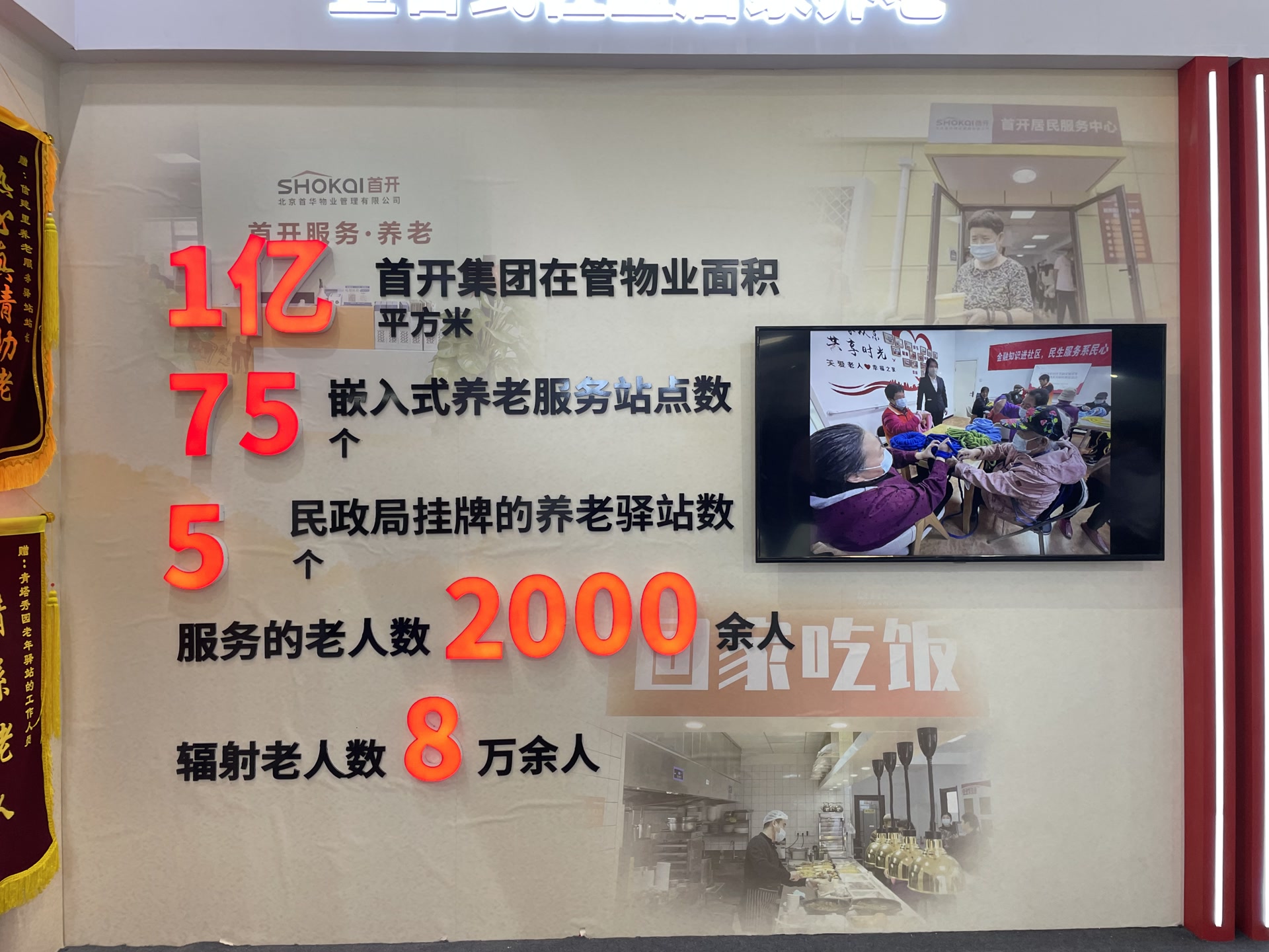 物业服务是首开集团的传统强项,物业管理面积近1亿平方米。2022年首开集团成为“物业服务+养老服务”试点单位。在“整合式社区居家养老区域”,展示的是试点的阶段性探索,以“挂牌养老驿站”+“嵌入式养老服务站点”的模式提供养老服务。2022年8月,首开集团首个社区养老驿站——丰台区芳城东里首开社区养老服务驿站开业,是首开集团第一个在民政局挂牌的养老驿站。“嵌入式养老服务站点”即依托现有的物业居民服务中心,在服务内容中增加养老服务,提供面向在管小区及周边社区长者的上门居家养老服务,实现点状嵌入、面状覆盖,探索解决老年人不愿离开社区和家庭的养老照护问题。目前已建设运营75个嵌入式养老服务站点和5个民政局挂牌的养老驿站。两年多以来,平价理发、社区食堂、健康讲座等一系列服务活动得到老人的一致好评,获赠了锦旗、收获了笑脸。