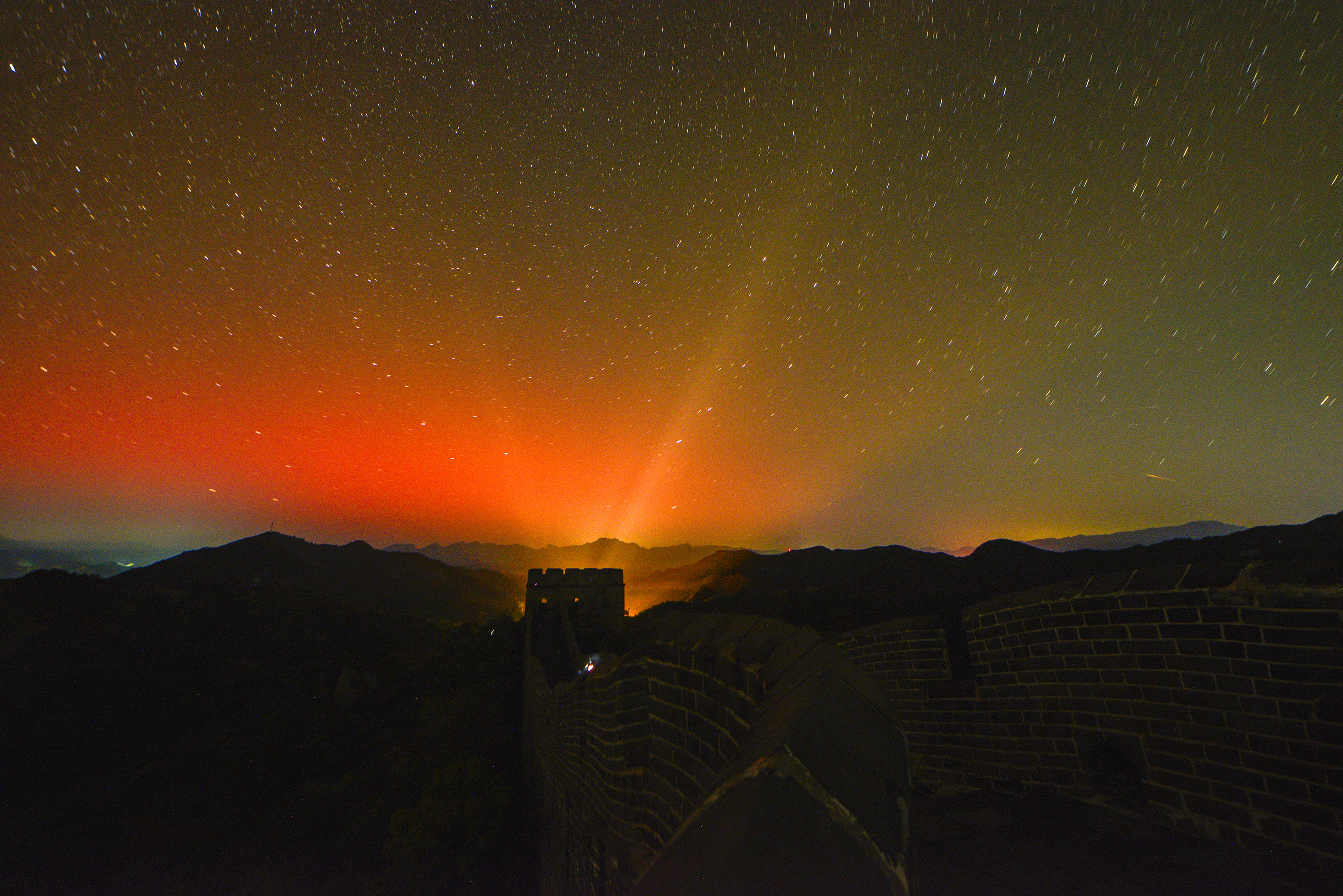 壮观!金山岭长城与绚丽极光遥相辉映