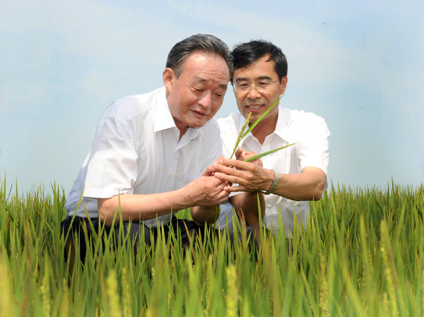 2012年7月19日,吴邦国同志在黑龙江农垦建三江管理局二道河农场万亩大地号察看水稻长势。新华社记者 谢环驰 摄