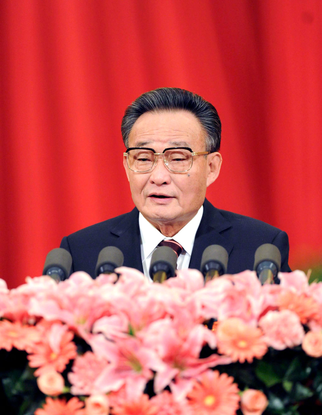 2011年3月10日,十一届全国人大四次会议在北京人民大会堂举行第二次全体会议。吴邦国同志作全国人民代表大会常务委员会工作报告。新华社记者 谢环驰 摄