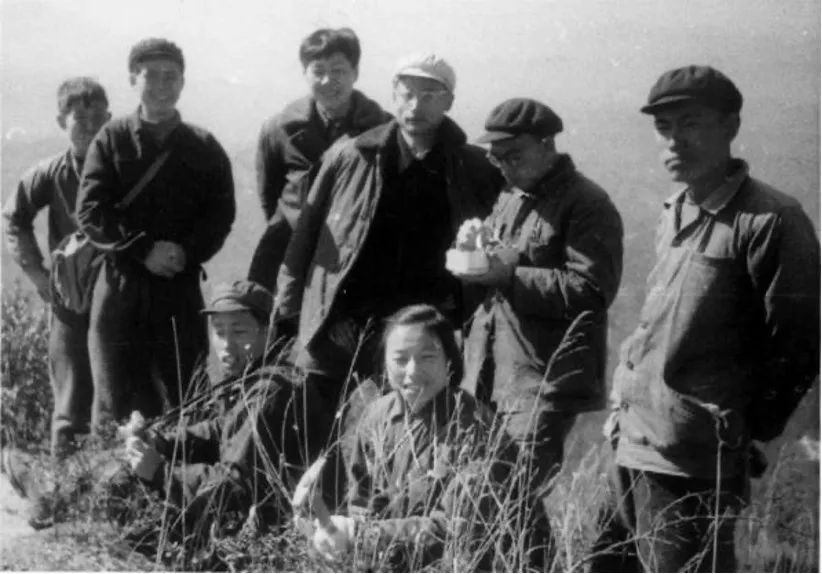 1961年冬,花岗岩研究组科研人员于广东翁源贵东岩体东北大帽峰顶合影