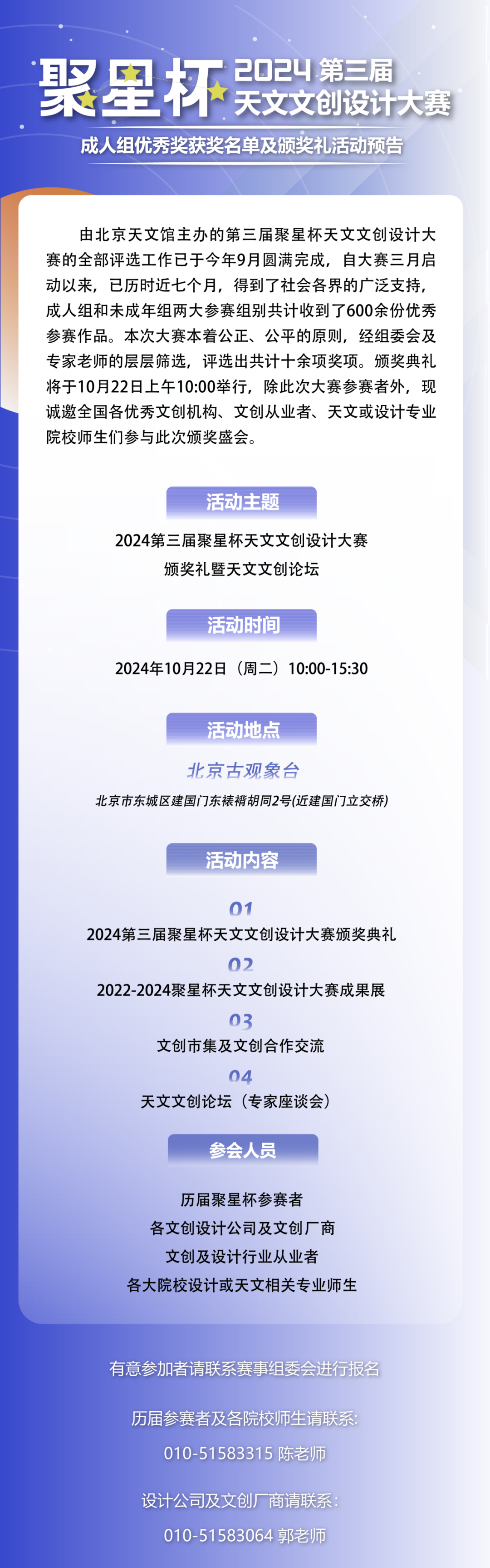 2024第三届聚星杯天文文创设计大赛 成人组优秀奖获奖名单及颁奖礼活动预告