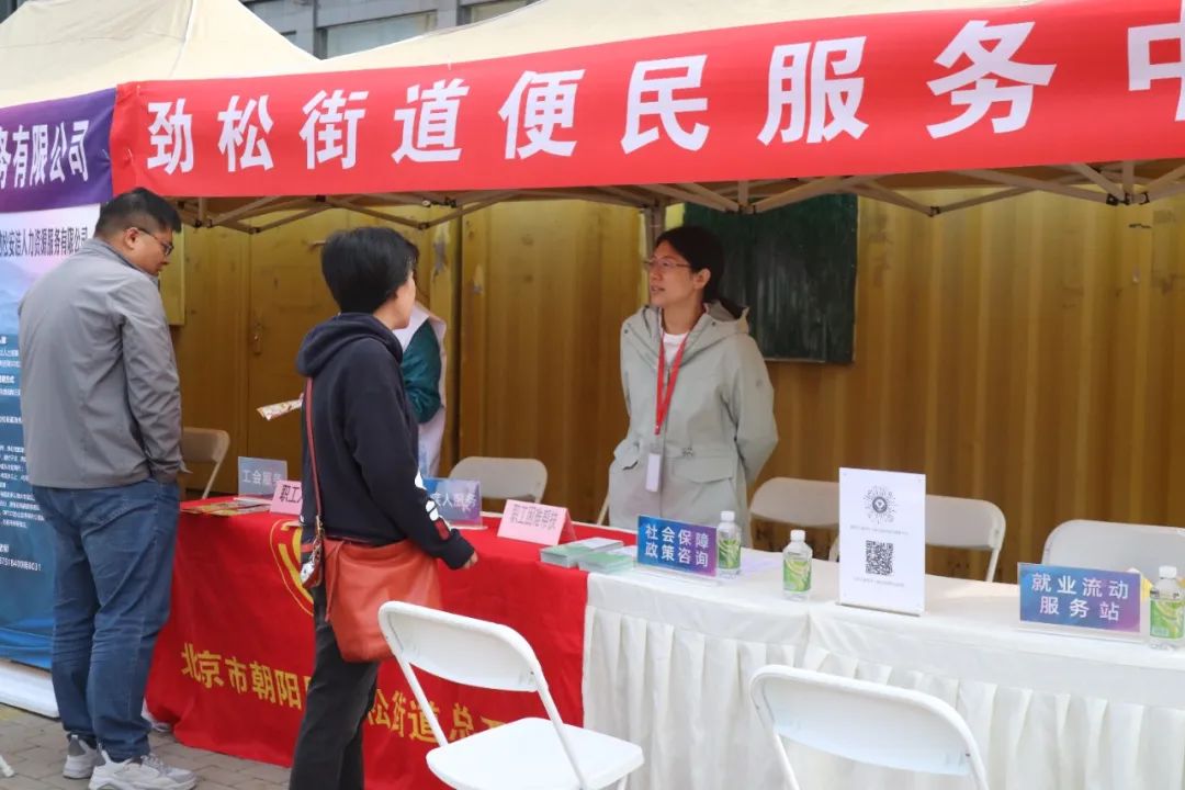 活动现场,劲松街道便民服务中心针对求职人群的需求,提供职业指导、就业失业政策咨询 、现场洽谈 等服务。