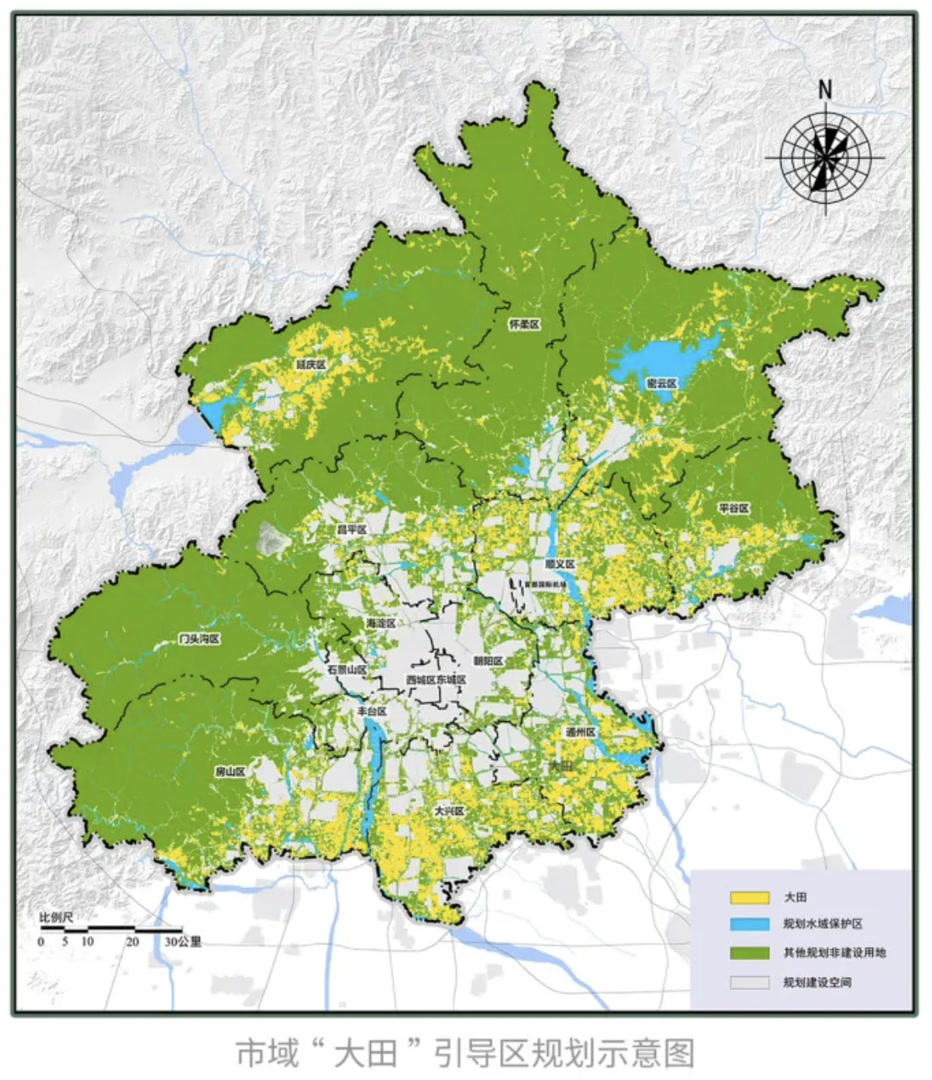 此外,《规划》还提出构建市、区、乡镇三级耕地保护规划编制与实施体系。其中,市级规划强化战略引领,构建新时代北京耕地保护新格局;区级层面应编制区级耕地保护规划,重点优化“大田”布局,夯实耕地后备资源数据底数,明确“大田”主导功能,打造精品产业;乡镇层面按需编制“大田”综合实施方案,像设计建设空间一样设计非建设空间。