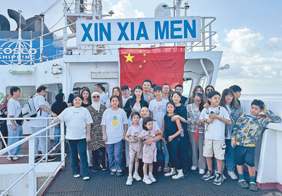 撤离人员在“新厦门号”轮上合影。