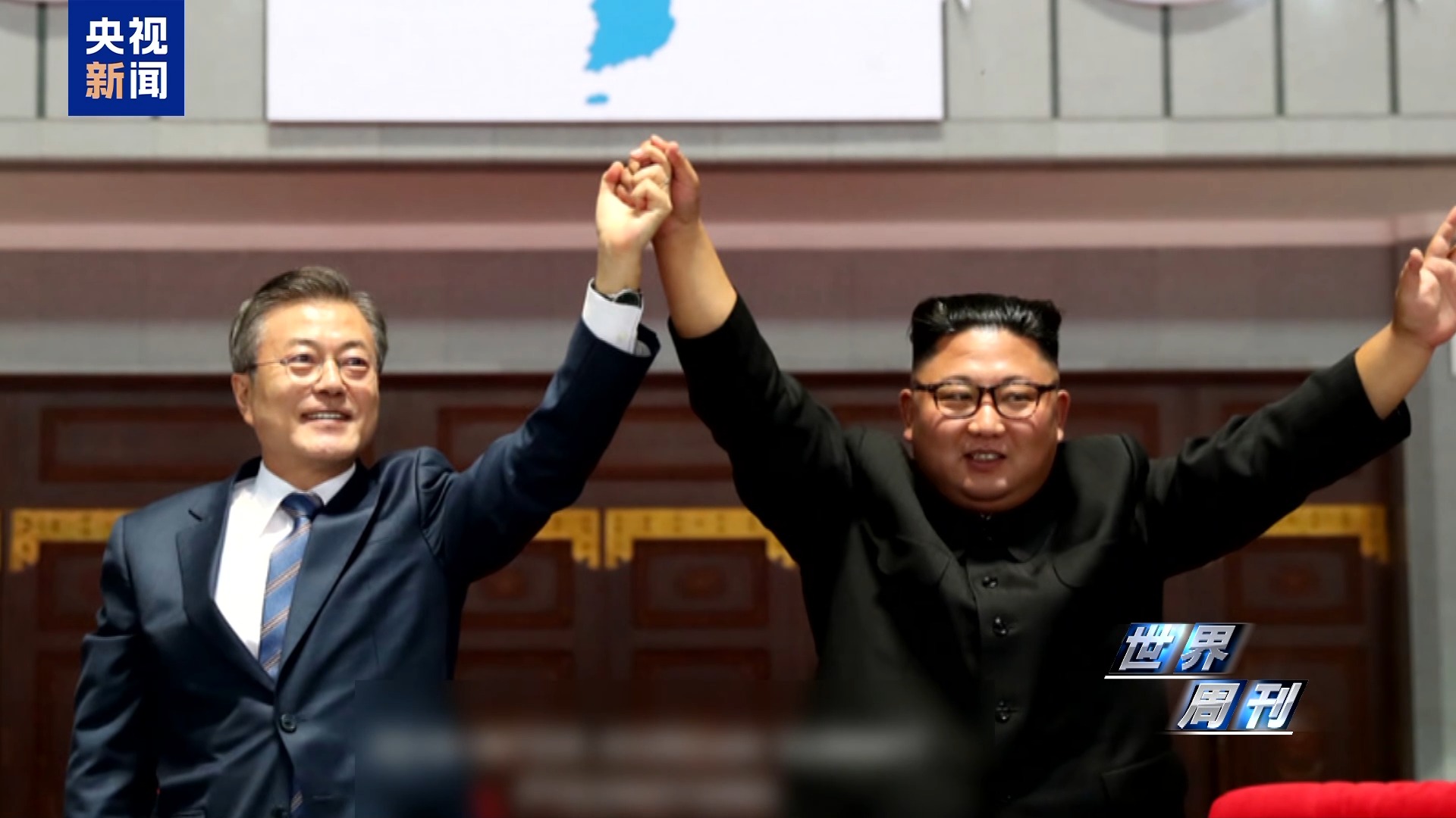 当时,文在寅与金正恩入场后举手致意的照片定格了半岛局势回暖的生动瞬间。