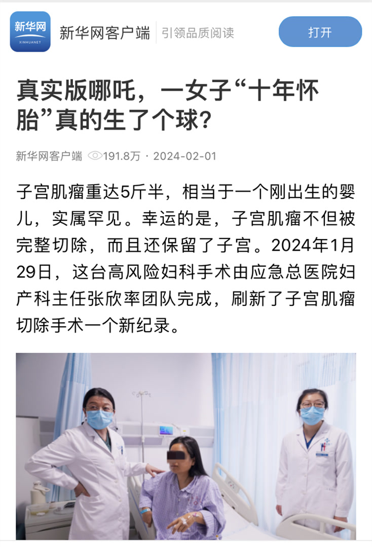 融媒体团队始终把医疗一线作为宣传主阵地,推出了一系列有代表性的医疗案例,如《男子误吞笔帽20年未觉异常》、《少女肚大如十月怀胎竟是因为卵巢囊肿》等报道,展示了医院的高超技艺。这些鲜活的新闻在央视新闻、人民日报等主流媒体刊发,累计阅读量超过千万人次。