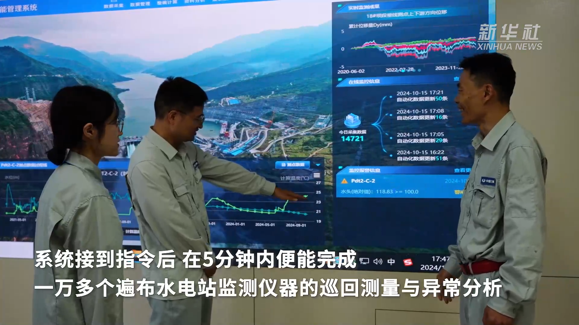 白鹤滩水电站是金沙江上的巨型水电站,位于四川和云南交界处。作为世界第二大水电站,它安装了16台全球单机容量最大的百万千瓦水轮发电机组。通过安全监测自动化系统,白鹤滩水电站在运行过程中,能做到每5分钟进行一次“全身体检”,为大国重器的安全稳定运行“保驾护航”。