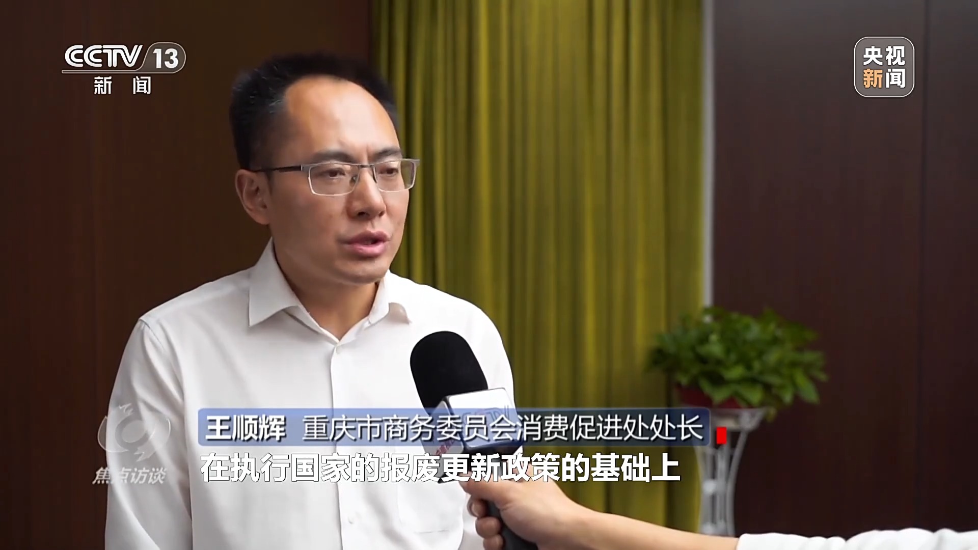 重庆市商务委员会消费促进处处长 王顺辉:在执行国家的报废更新政策的基础上,我们因地制宜优化了汽车置换更新的政策。政策的审核上,我们加快进度,同时也加快了资金的兑付力度,提高消费者的体验感。