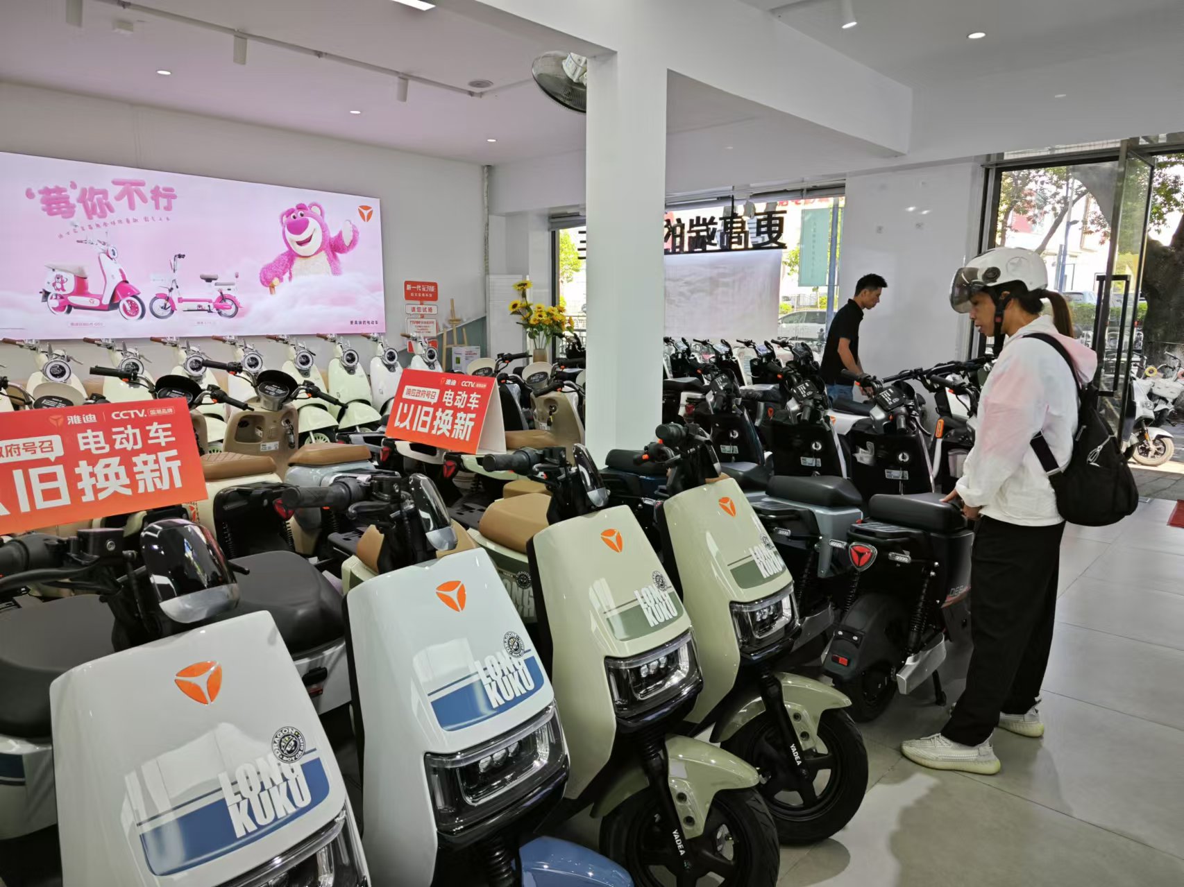 在广州市天河区雅迪电动车长兴路旗舰店,记者看到,有消费者正在店员的指导下填写购买资料。门店负责人吕廷伟说,门店安排销售人员全程跟踪服务以旧换新的订单,做好服务。