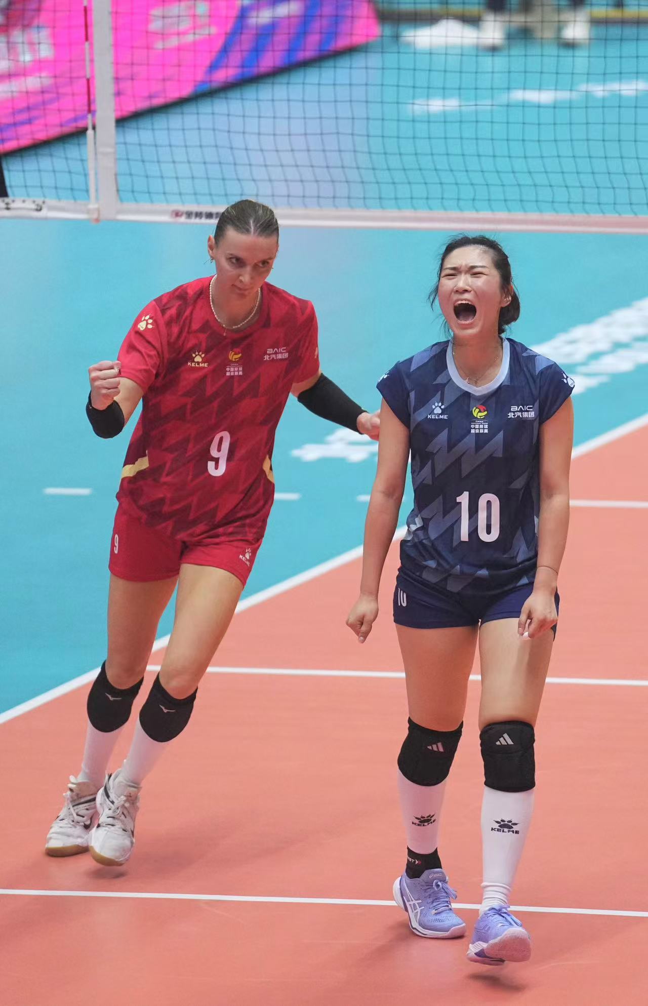 10月26日,2024至2025赛季中国女子排球超级联赛在北京朝阳体育馆揭幕。在A级常规赛第一轮,北京北汽女排坐镇主场迎战福建女排。在落后两局的不利情况下,北汽女排顽强地将比分扳平,但最终还是遗憾地以2比3负于对手。五局比分为:23比25、24比26、26比24、25比20、10比15。