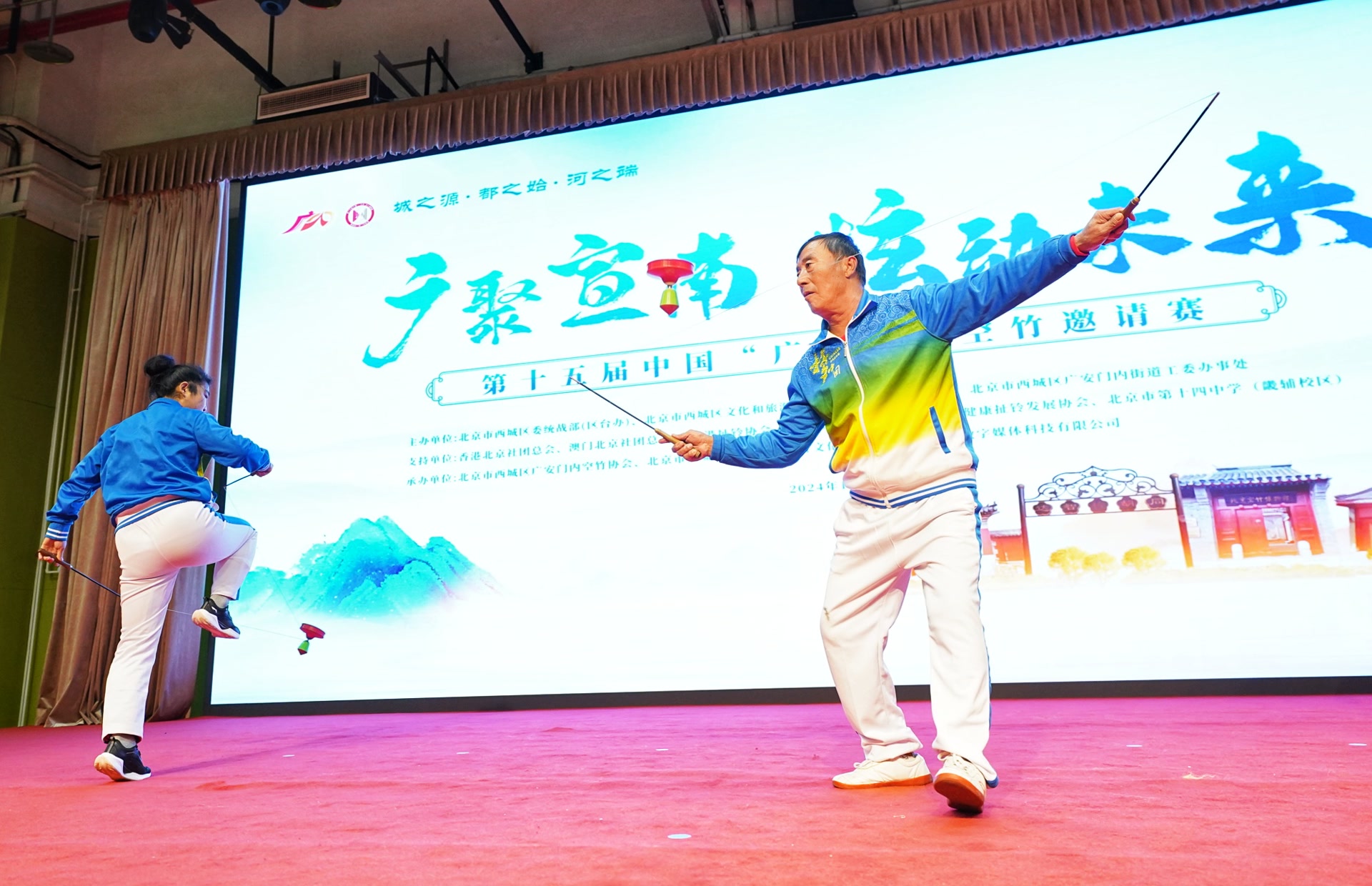 本届邀请赛特别设立“未来之星”比赛,旨在为中小学空竹选手搭建展示平台。自2013年起,广内地区开展非遗进校园活动,中小学和社区一直积极开展空竹教学活动。西城区回民学校、康乐里小学、槐柏幼儿园、实验小学等学校开设空竹课程,组建空竹队伍,成为抖空竹保护传承校。