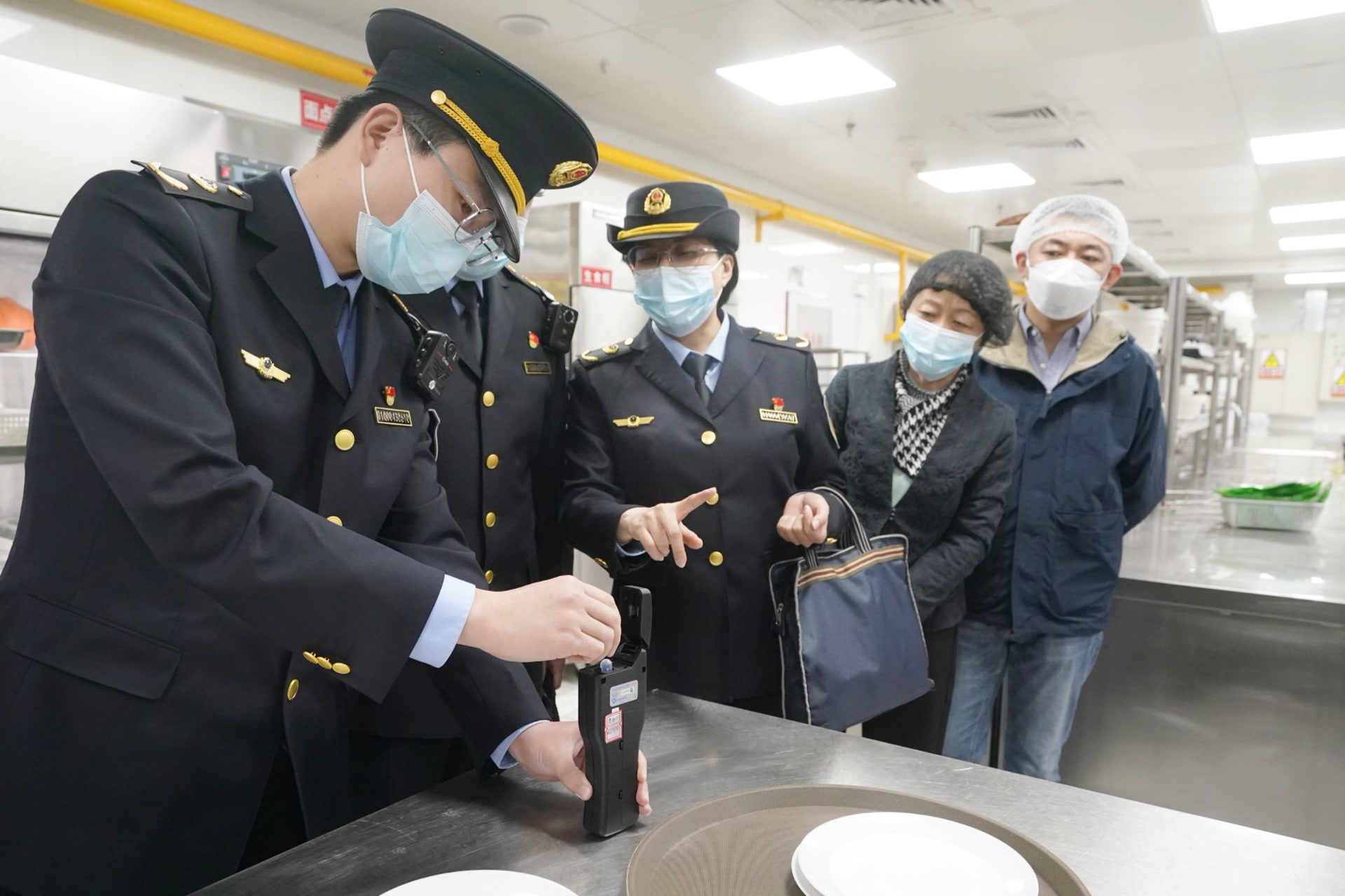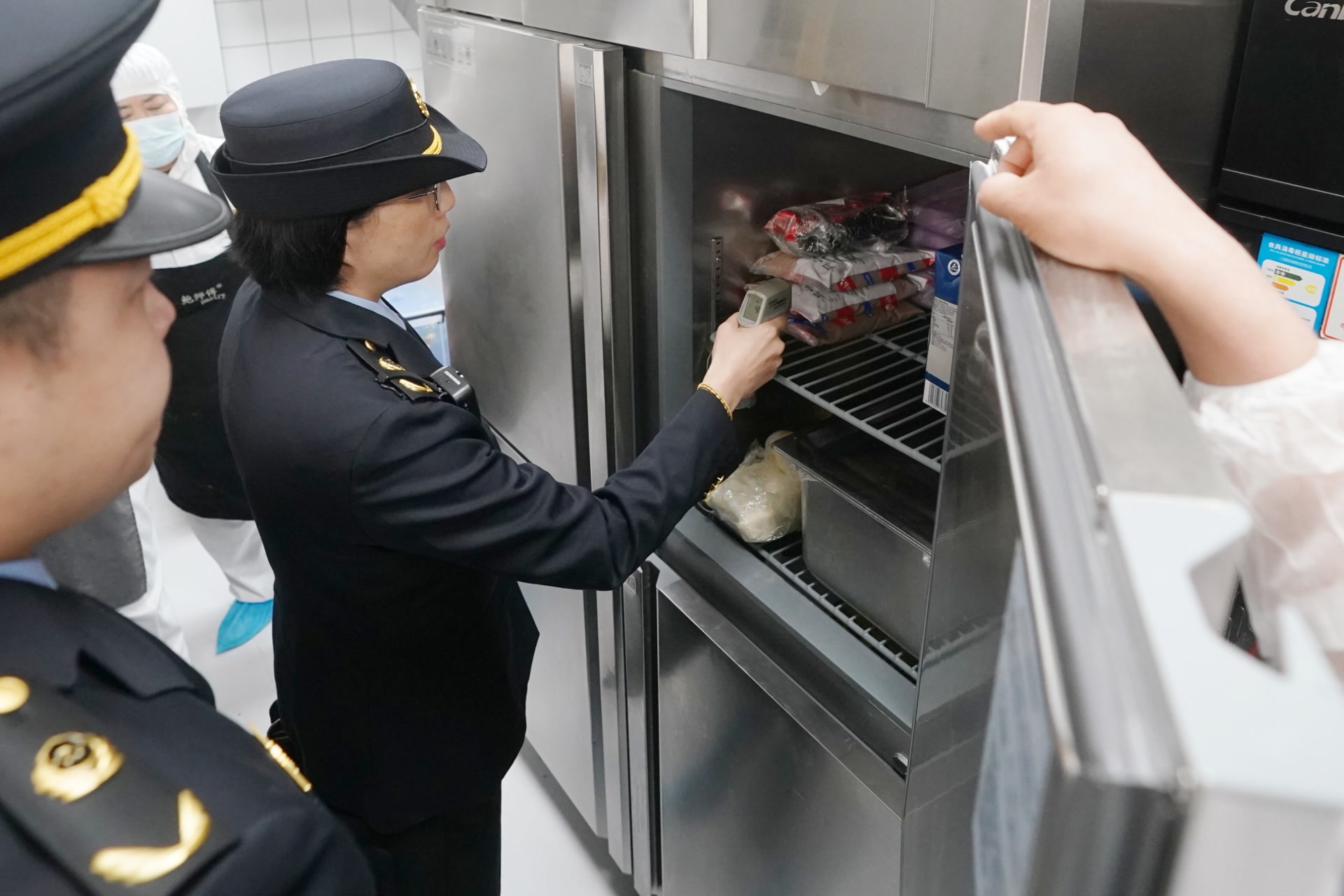 “您好,您是食品安全总监吗?请出示一下您的任命书。”“‘日管控、周排查、月调度’要记得按时记录,如果发现问题,要及时采取措施……”执法人员一边询问着,一边拿起一个餐盘,用ATP荧光检测仪对其表面洁净程度进行检测。