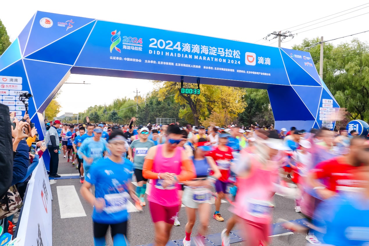 10月27日上午,2024滴滴海淀马拉松在北京市海淀区中关村壹号鸣枪开跑,万名马拉松跑者齐聚海淀,穿越中关村、跑过稻香湖,深度领略海淀多元魅力,尽情挥洒汗水。