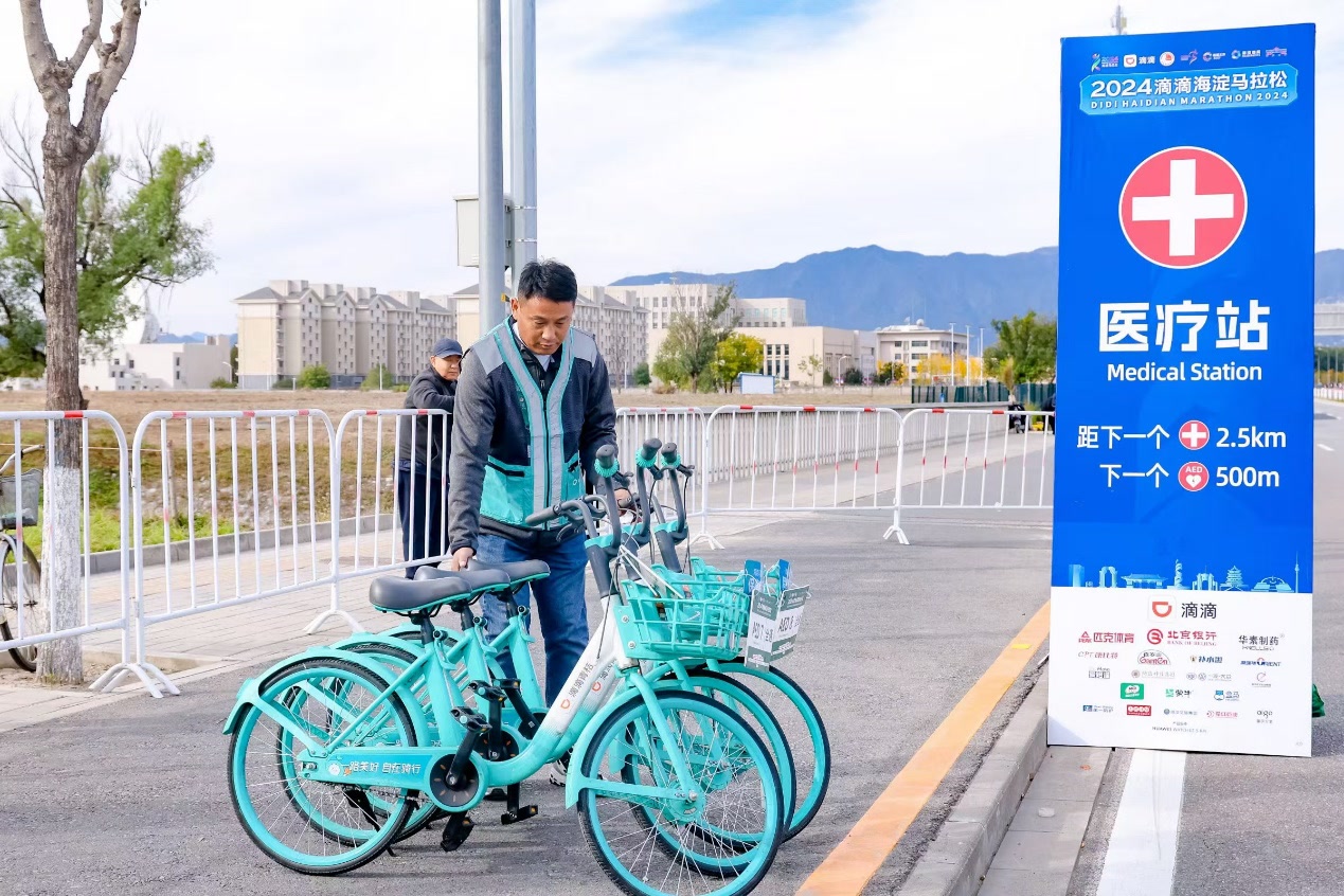 作为海淀马拉松的独家冠名赞助商,滴滴多措并举,通过滴滴马拉松保障车队、滴滴送货物流保障车队、青桔单车及出行跑腿权益礼包的组合,在赛事中全程服务和保障海淀马拉松参赛人员的接驳和疏散工作,为参赛选手的医疗及补给提供出行服务助力。