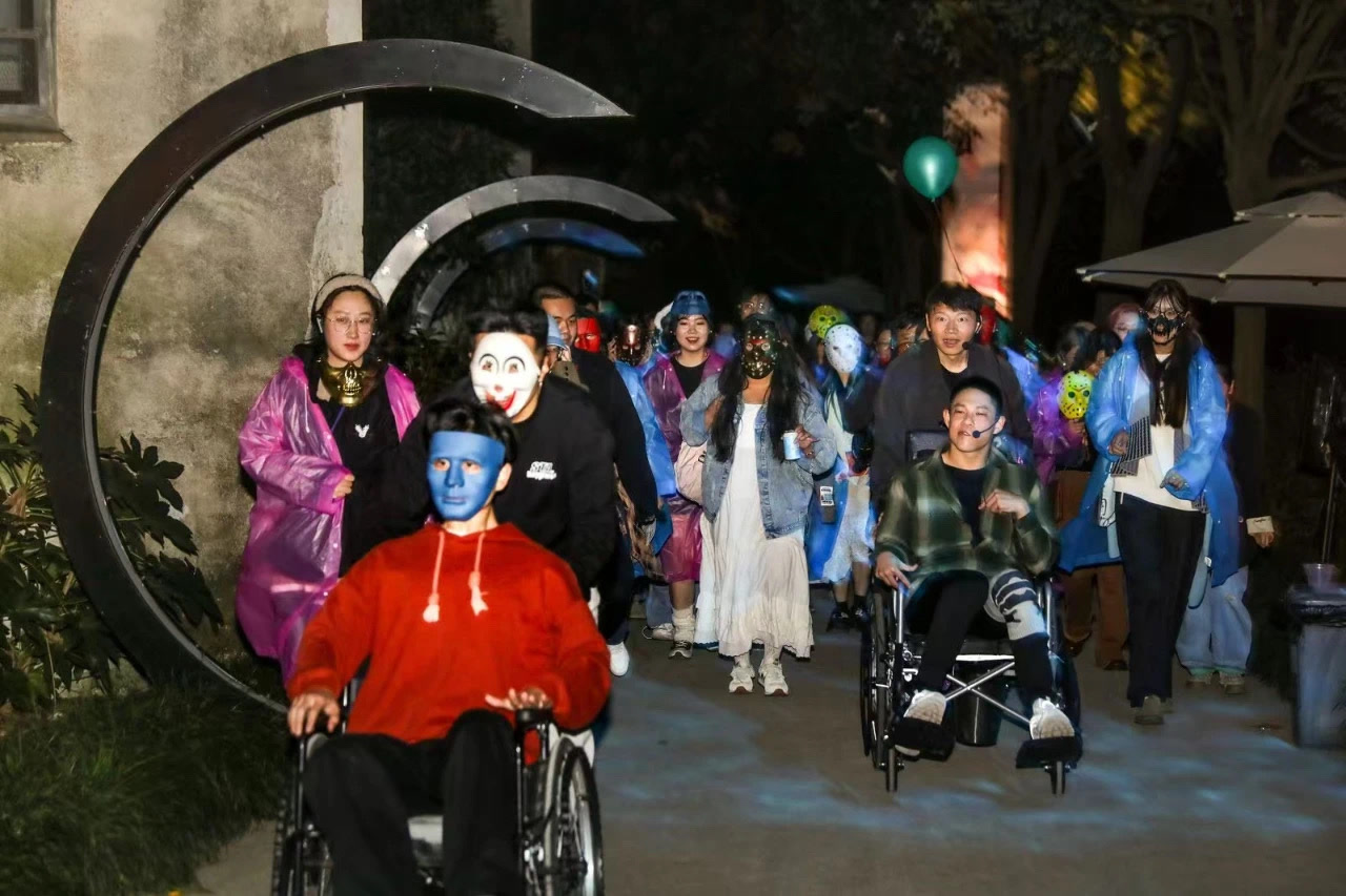 本届戏剧节特邀剧目特设“特别关注”单元,来自北京的乐意剧团为观众带来了一场票价0元的公益演出《逆转未来》。这部由高原编剧、马岩导演的作品,是国内第一部泛障别开放式残健融合戏剧。泛障别,是指涵盖了视障、听障、肢体障碍等多种残障人群。乐意剧团成员近七成为残障人士,这次乌镇演出,演员中残障人士更占到近九成。他们凭借超于常人的热爱和努力,站上舞台,挑战人生“不可能”。剧团始终践行残健融合理念,重现、扩展、延伸残障个体的多样生命体验,以艺术实践联动残障与非残群体,超越身体桎梏,共创包容、和谐、融合的社会环境。