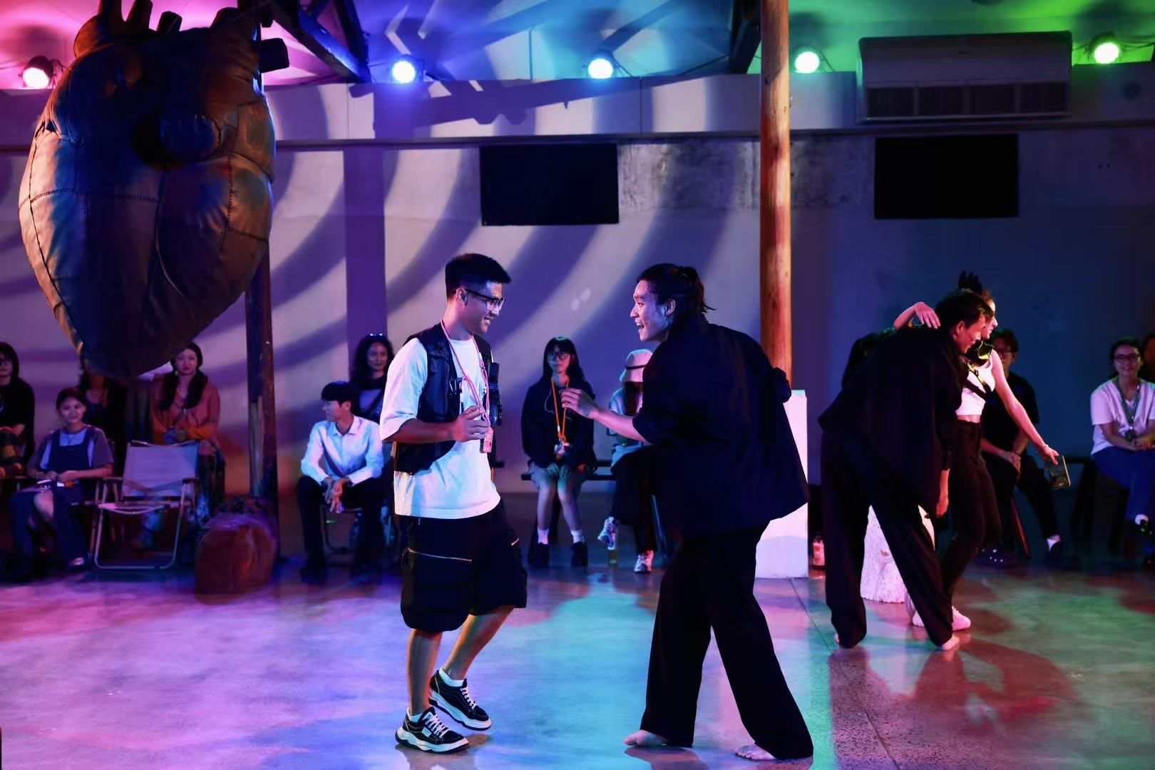 由窦辉导演的LIVE HOUSE说唱版《仲夏夜之梦》将说唱风格融入莎士比亚的经典文本,导演和创作者带头“躺下”,和观众一起跟随鼓点打着节拍,躺着看戏。陈老巨导演的互动实验剧场作品《俄狄浦斯与机械神谕》,将希腊悲剧带到新忒拜城的虚拟空间城市,让观众在新型观演关系中构建“元宇宙”的新认知。优秀青年舞者编导陈梓豪将现代舞、先锋音乐、实验戏剧、装置艺术融于舞蹈剧场作品《危险关系》,以无声的肢体语言,探索人与人之间错综复杂而因果相依的关系。编导文小超携手舞蹈家华宵一带来的《两条腿》,以肢体在有限的空间中探求着生命的无垠。导演颜永祺带领张泉灵等非职戏剧爱好者,共同对经典剧作《万尼亚舅舅》的角色造型和空间氛围进行大胆创新,引导观众沉浸式探索感受不一样的戏剧体验。吴彼和刘添祺导演并参演的《以后有事就烧纸吧》更是热门爆款作品,演员带着观众穿越密集的人流,耳机里播放着秘密的“行动暗号”,穿越丝厂市集、粮仓艺术空间,和“外星人”对话,通向位于北栅粮仓的艺术天桥。这些演出都为观众带来了多元化的戏剧体验,扩宽了人们对戏剧的认知。