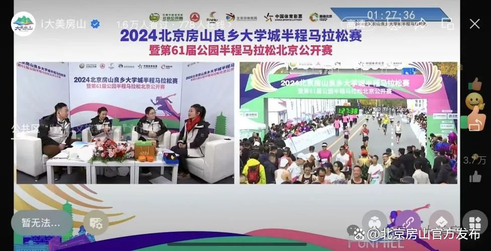 半马期间,大美房山微信视频号还进行了为期3个小时的直播,全程、全方位直击热烈现场,推介房山美食以及文旅资源,累计观看量达1.9万人次,互动点赞超4万次。