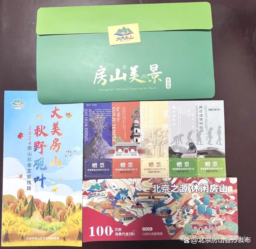 为迎接八方跑者,在参赛包内,房山区文化和旅游局精心准备了房山美景体验包,共包含房山美景导游图、秋季线路、文旅消费代金券、五大景点联票,诚邀大家来房山,趁此秋景“行走房山”,在欣赏秋日绚丽美景、品味厚重文化中“读懂房山”。