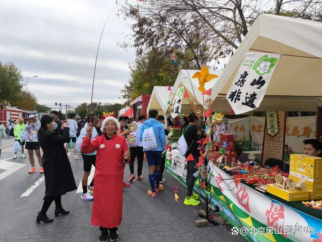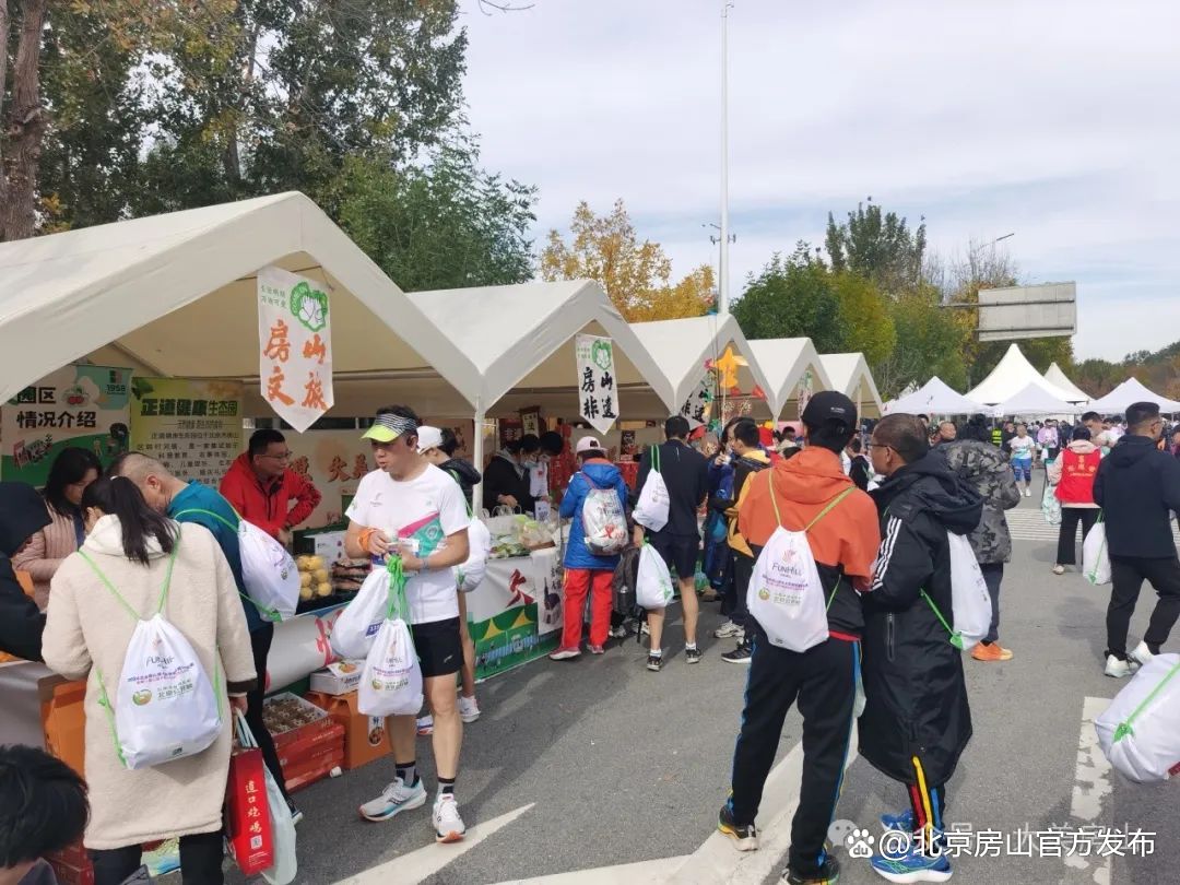 本次房山半马比赛中,房山区文化和旅游局还特别组织天毓山庄、道口烧鸡、莱恩堡等34家文旅单位在起终点、5公里、10公里处分别设置了文旅市集,为选手们的奔跑之旅增添了更多色彩与乐趣。