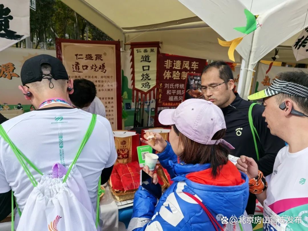 文旅市集、特色补给、房山小茶馆等环节的加入,不仅丰富了赛事的内容与形式,也让选手们在赛事体验中更加深入地领略了房山区的独特魅力与人文风情,吸引了大批选手跑完半马前往咨询了解、互动体验。
